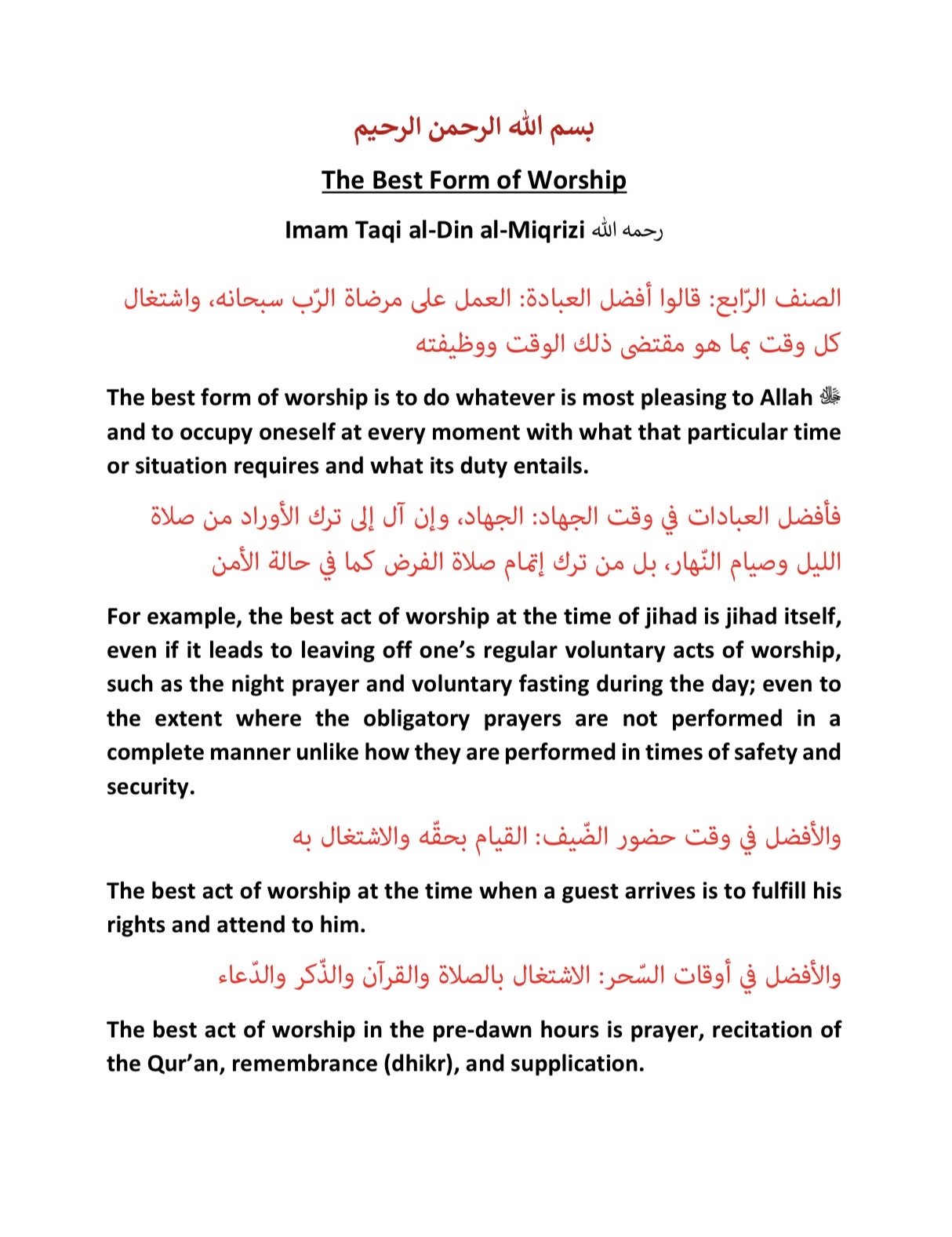 The Best Form of Worship – Taqi al-Din al-Miqrizi