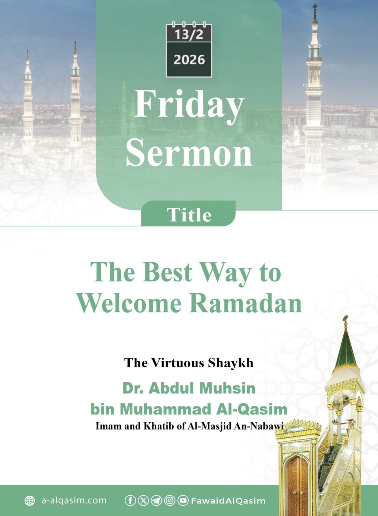 The Best Way to Welcome Ramadan (Friday Sermon) – Abdul-Muhsin al-Qasim